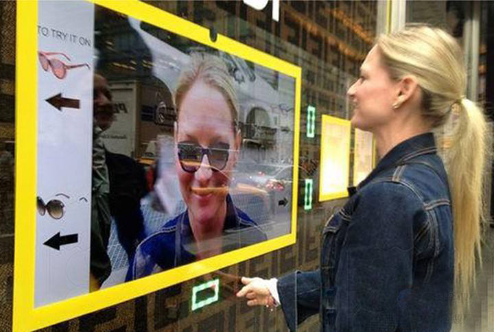 互動(dòng)櫥窗設(shè)備可將圖像投射到商戶臨街玻璃櫥窗的普通玻璃上(所有互動(dòng)櫥窗設(shè)備都放置在店內(nèi),畫面尺寸不限),顧客在店外隔著玻璃點(diǎn)擊圖像畫面,在店內(nèi)的互動(dòng)櫥窗設(shè)備可感應(yīng)到 ……
